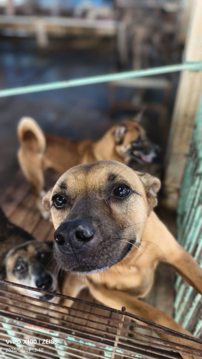 那天,協會接獲通報,在某個廢棄工地後方,有一隻黃狗被關在籠子裡,孤單生活,無人照顧。當救援人員趕到現場時,眼前的她雖然瘦弱,卻在看到人靠近的瞬間立刻搖著尾巴、興奮地想撲過來。