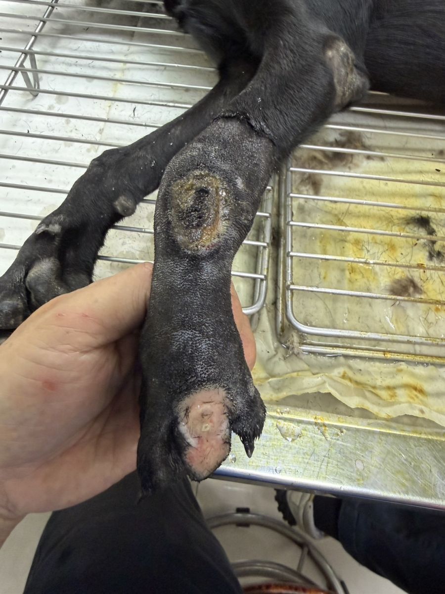 2025/10/15目前 YOBI 狀況,穩定蠻親人的,已完成清創縫合,所幸不需截肢,預計 星期六出院,10 天後拆線。