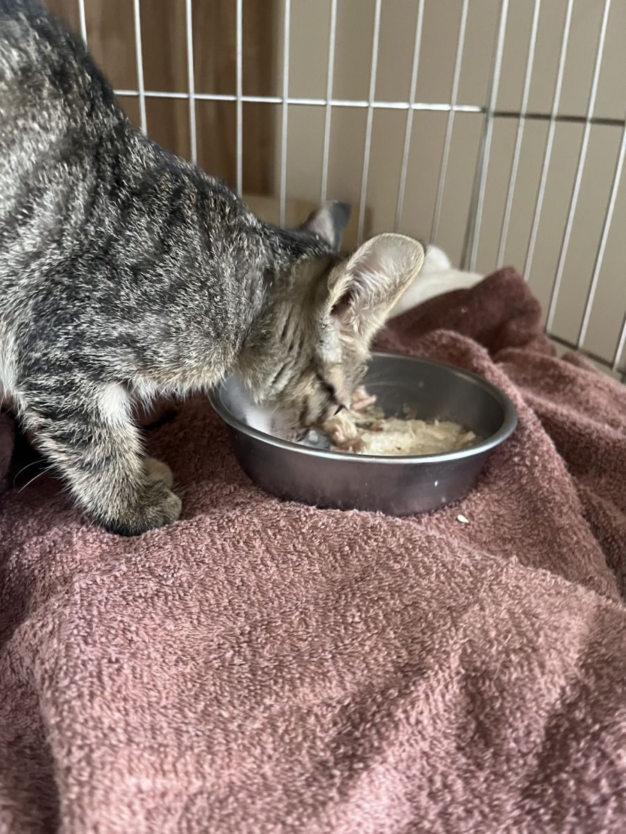 2025/10/27小中中已成功康復,貓瘟檢測結果為陰性,整體狀況穩定,目前無其他異狀,仍需持續隔離觀察三個月以上,已施打第一劑疫苗,待確認健康無虞後再安排送養。