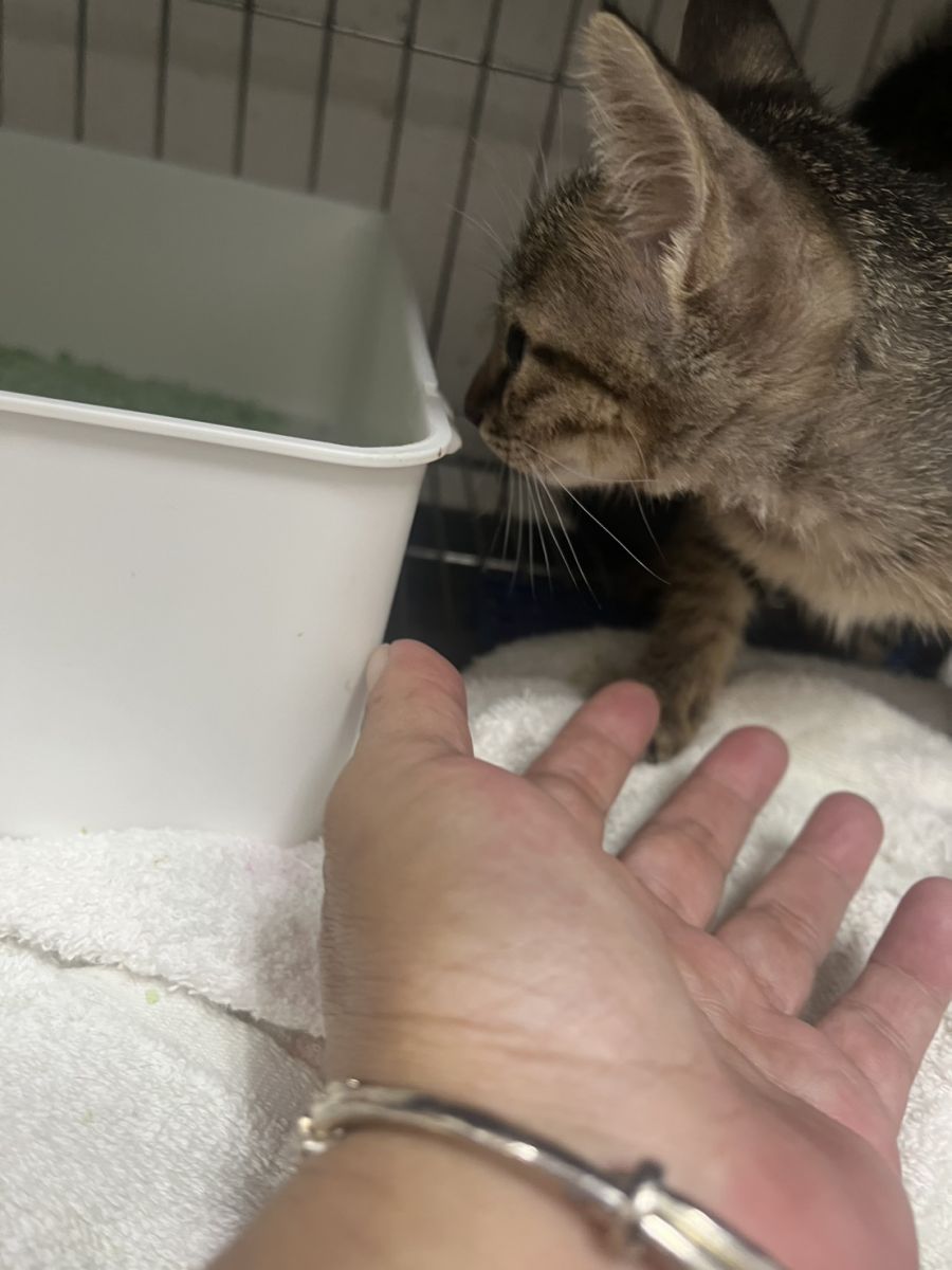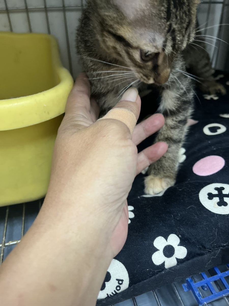 2025/10/16 協會接獲一名學生報案,於台中大肚區一家五金百貨購物準備離開時,發現一隻小貓被困在隔壁的玻璃門與鐵門之間,時間約為晚上9點30分左右,擔心店家關門後未能及時發現,導致小貓受傷,報案人臨時取來一個紙箱將他安置,並立即向協會請求支援。