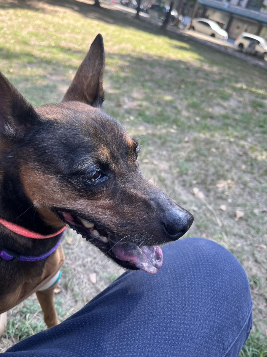 目前小黃已安置於台南總部,狀況穩定,性情溫和親人,靜靜等待下一位願意給予他安全感與愛的家人。