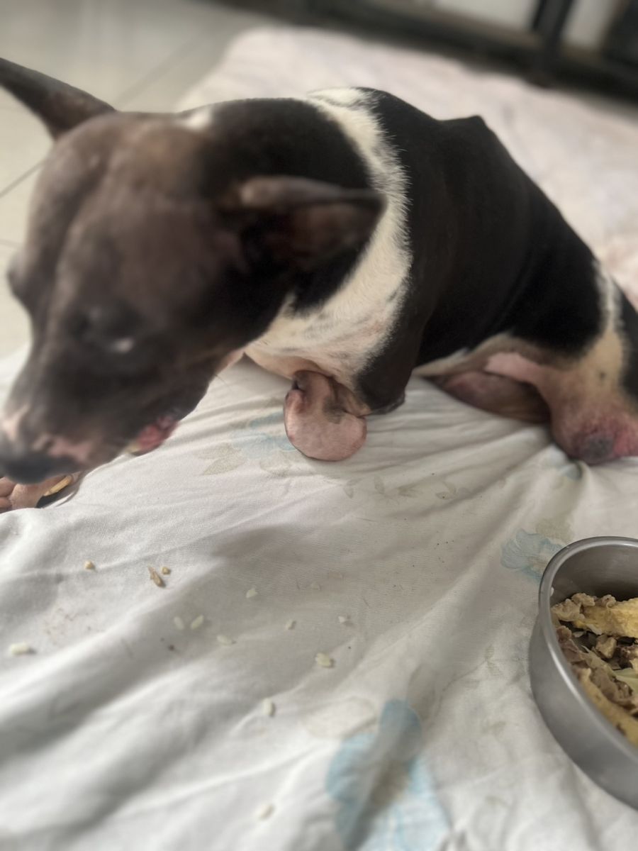 3/24 大埔因為一直用屁股拖地導致褥瘡,正在治療中!雖然每天都會坐輪椅放風,但因為只剩一隻腳可以支撐,所以一次最多只能一小時,一天三次,不然前腳負擔太大!大埔因為會咬人都要戴著頭套,一天三餐人工餵食都吃很多,但是身上還是不長肉,雖然因為要坐輪椅不要吃太胖比較好,但也不要瘦成皮包骨呀!我們還要跟醫生回報體重呢!