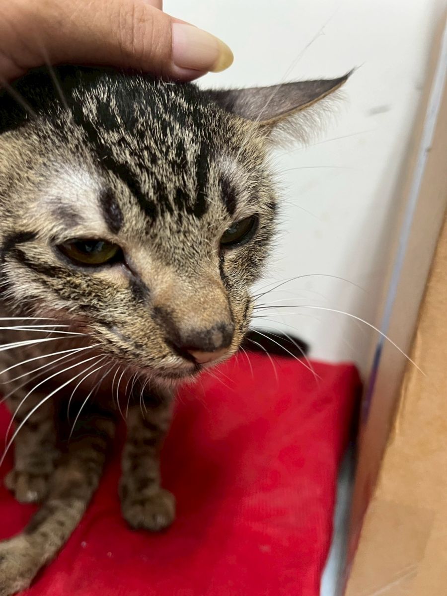 2022/11/25車禍癱瘓貓咪耶誕:昨天半夜承接一個案件,一位民眾通報嘉義路上,發現一隻貓咪因車禍吐血,奄奄一息,立即請志工前往救援,已緊急送到醫院檢查照X後,經確認小貓的脊椎已經斷了,未來恐怕會終身癱瘓,原本以為小貓活不了,但沒想到小貓咪竟然努力的讓自己活下來了,目前住院中,因報案人只是路過,沒有能力全額負擔醫療費,懇請善心人士贊助,小貓取名耶誕